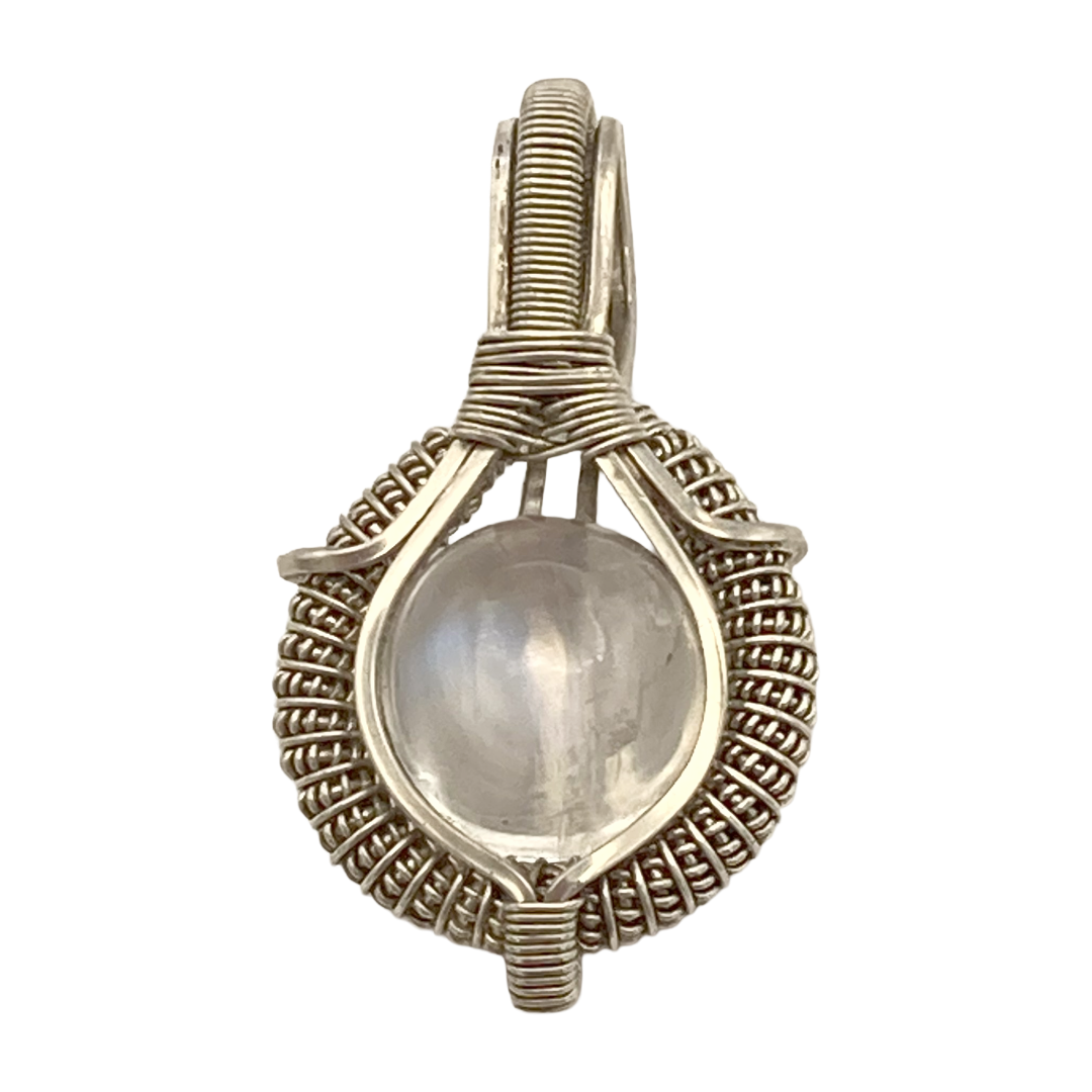 The Mini Madagascar Moonstone Aura Pendant, crafted from sterling silver, showcases a refined design that highlights the luminous beauty of moonstone, perfect for adding a touch of sophistication to any ensemble.