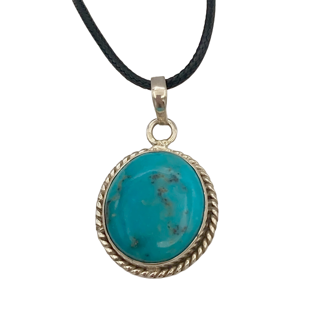 Elevate your elegance with the Circle Turquoise Pendant, crafted in sterling silver. The vivid turquoise stone offers a striking contrast against the sleek silver, adding a refined pop of color to any outfit. Its timeless circular design embodies balance and harmony, making it the perfect accessory for sophisticated, everyday wear or special occasions.